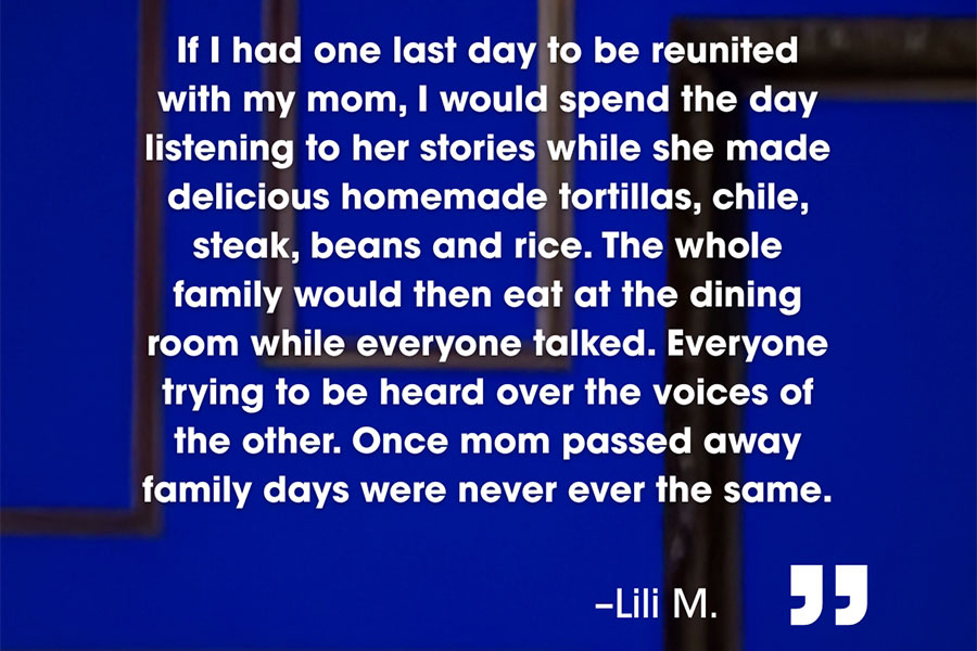 Share your story with us. Lyric has a spring 2026 production that is centered on Dia de Muertos. Your anonymous responses may appear in a lobby display later this season.